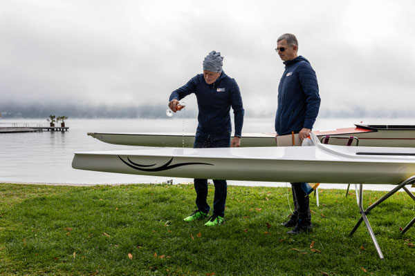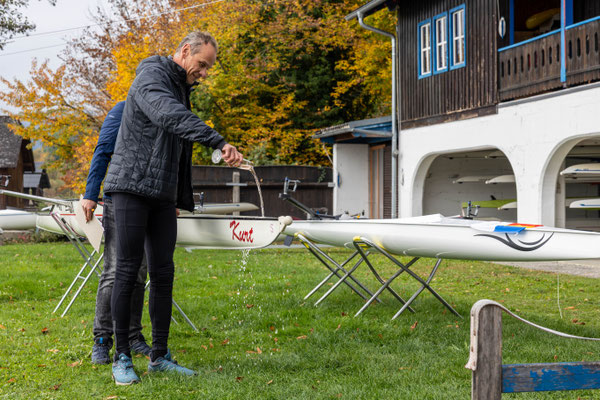 Das Abrudern 2025 ist Geschichte. Vor dem Ablegen wurden noch zwei Einer, Kurt und Roland, getauft.